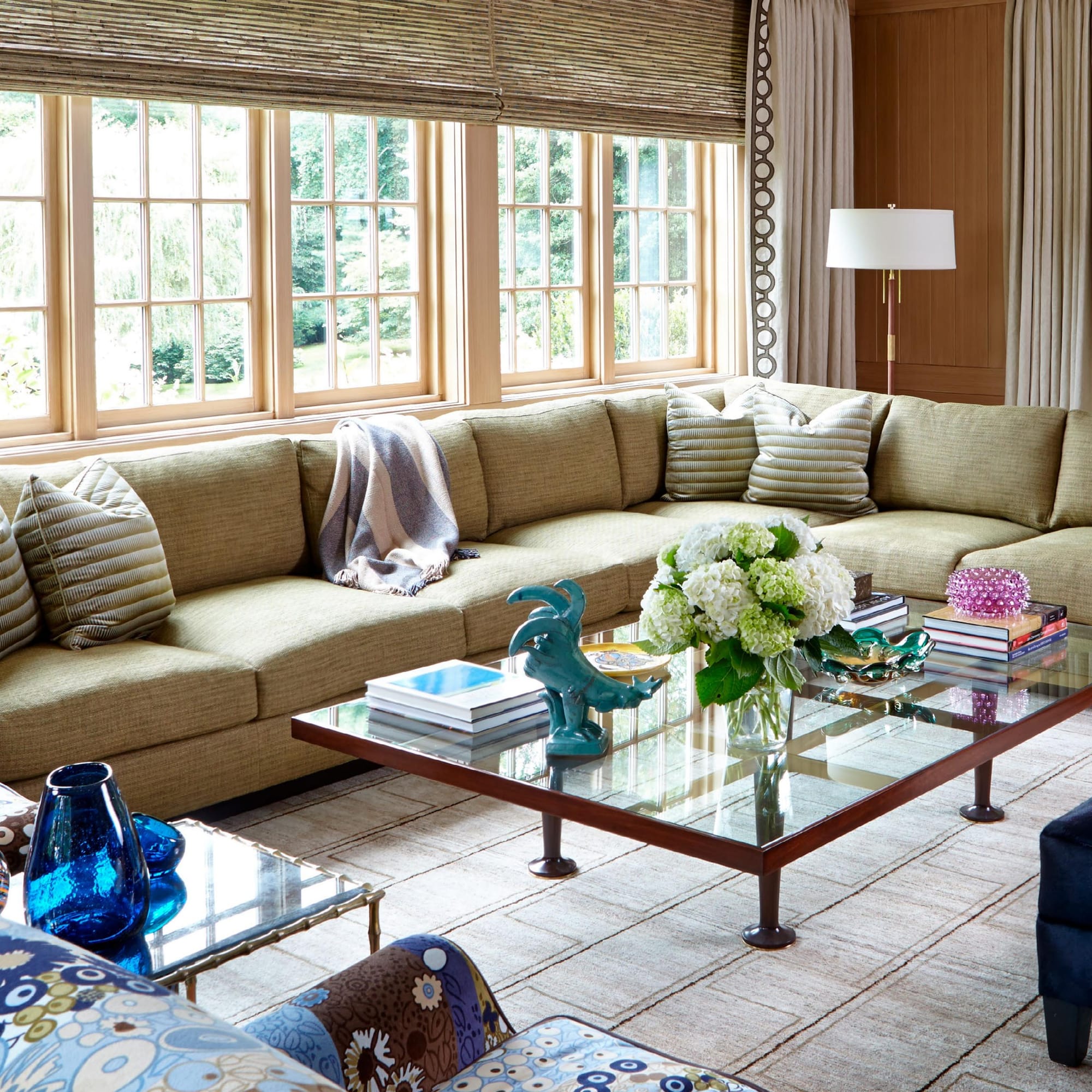 Na Holland & Sherry, tradicional casa britânica, a sofisticação passa pelo rigor técnico das fibras naturais, muitas delas desenvolvidas originalmente para alfaiataria e hoje reinterpretadas para interiores. Tecidos que absorvem luz, som e movimento, transformando o espaço em experiência sensorial contínua.