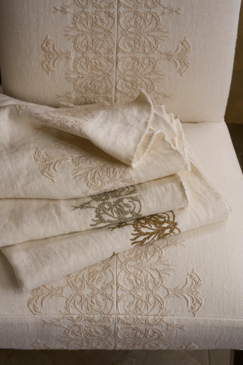 O mesmo acontece com os linhos da De La Cuona, tecidos belgas lavados até atingirem um ponto raro de maleabilidade. Eles não tentam parecer perfeitos. Pelo contrário: aceitam o amassado, o uso, o tempo. São superfícies que envelhecem com dignidade — e isso diz muito sobre o tipo de vida que propõem.