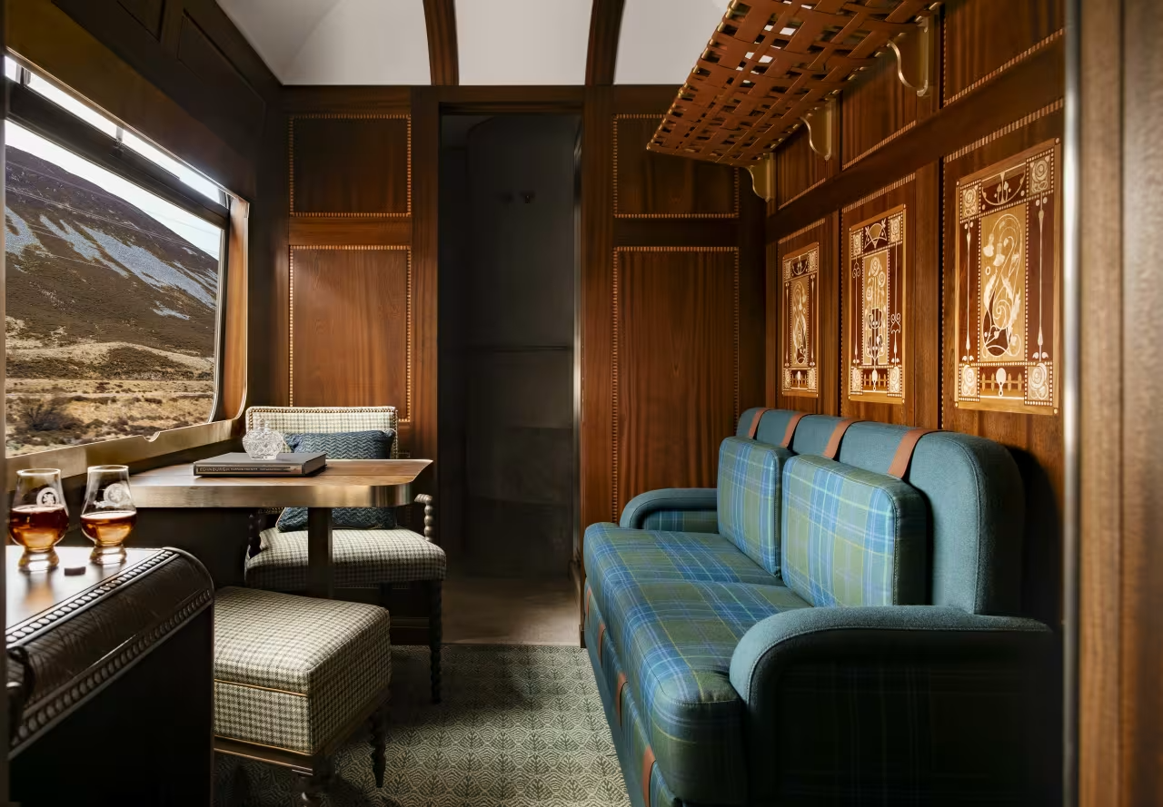 Não se trata de uma sala de espera corporativa. O ambiente propõe um "atrito social" elegante, onde viajantes de diferentes nacionalidades compartilham o vagão-observatório. O design de interiores — com marchetaria impecável, tweed e poltronas de veludo — não é apenas decoração; é um cenário que dita o comportamento. A etiqueta aqui exige baixar o tom de voz e elevar o nível da conversa.