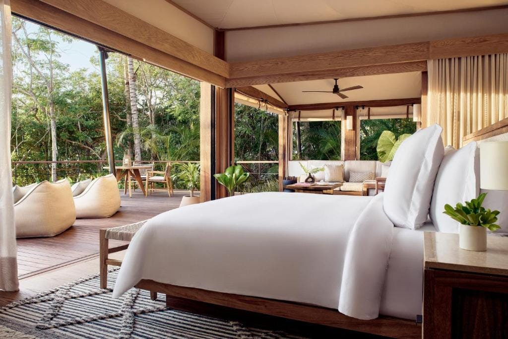 Naviva propõe uma ruptura silenciosa no modelo de hospitalidade tradicional da Península de Punta Mita. Escondido em 48 acres de floresta na costa do Pacífico mexicano, o refúgio aposta na arquitetura de imersão com apenas 15 bangalôs de design biofílico. Não é apenas sobre a localização privilegiada à beira-mar, mas sobre a privacidade radical e a integração sensorial que o espaço oferece.
